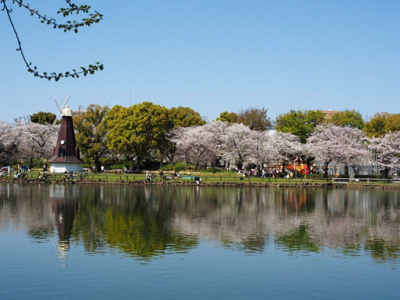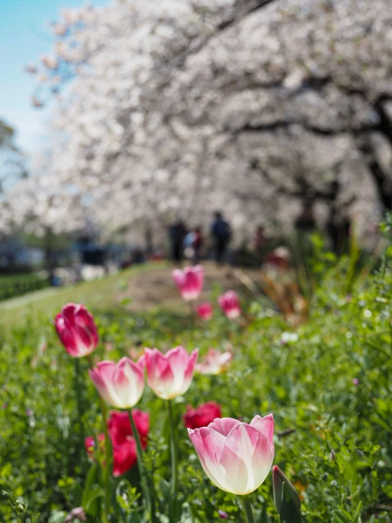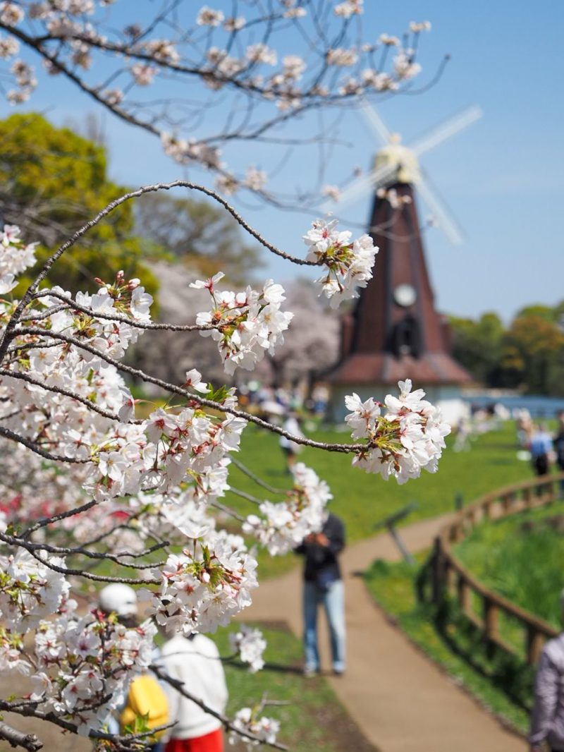 浮間舟渡公園はチューリップなど、花と一緒に桜が楽しめるし、池や風車と一緒に撮ると絵になりやすいのが良いところ。今日は多くの人が訪れていました。外国人も多かったです。